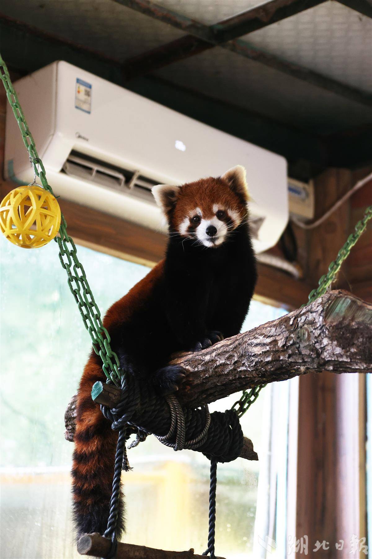 小熊猫在室内吹着温暖的空调。(湖北日报全媒记者 陈迹 摄)