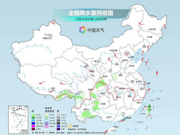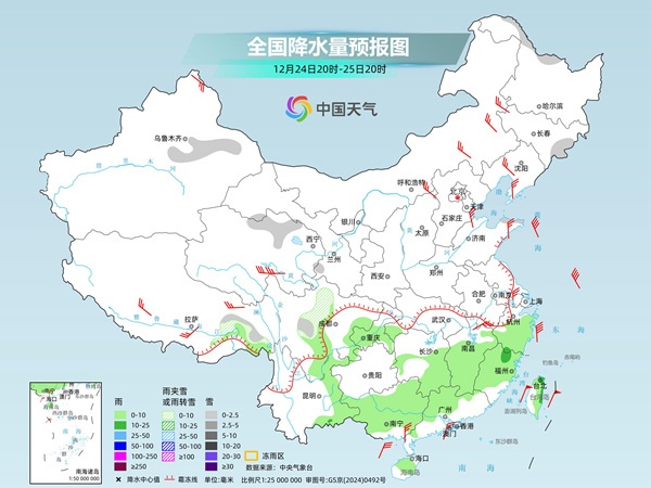 这次冷空气也将给华南带来降温,25日将是降温的主要时段,广西东部、广东、福建一带将出现4~10℃降温。