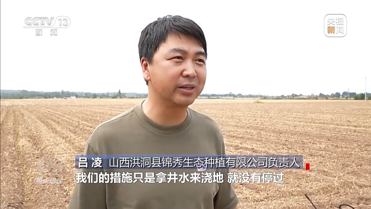 山西洪洞县锦秀生态种植有限公司负责人 吕凌:墒情差到向土里挖四五十厘米都不见墒。很着急,老天不下雨,我们不停地拿井水来浇地,也缓解不了旱情。