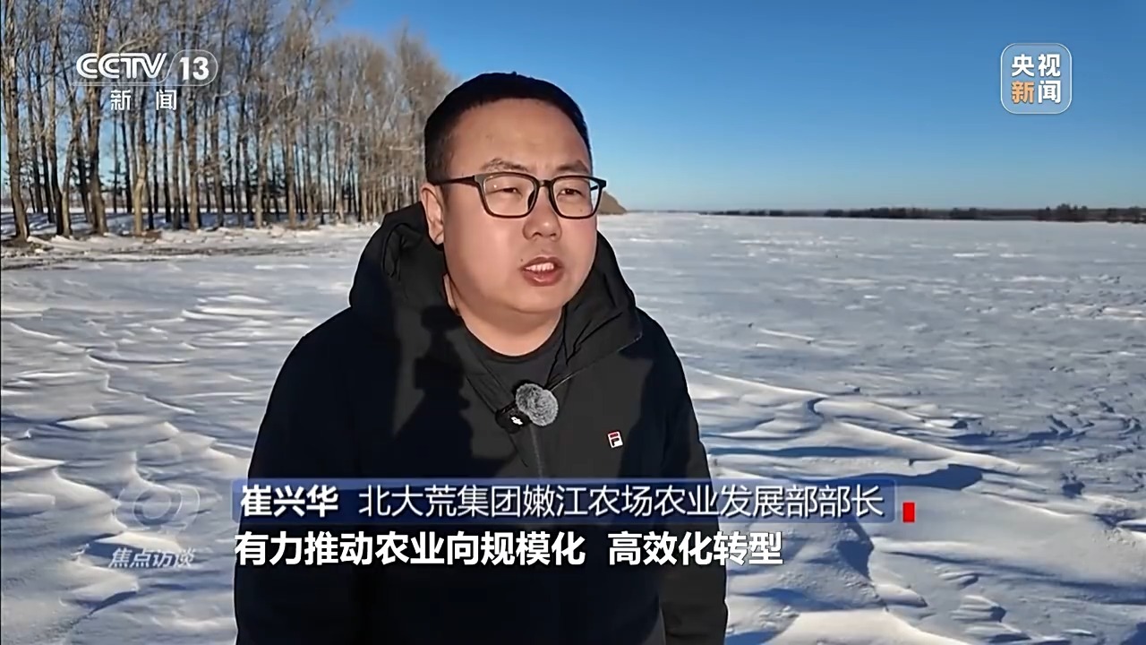 北大荒集团嫩江农场农业发展部部长 崔兴华:近几年,嫩江农场推进高标准农田建设6.43万亩,粮食总产量稳步增长,有力推动农业向规模化、高效化转型,为筑牢粮食安全根基提供坚实保障。