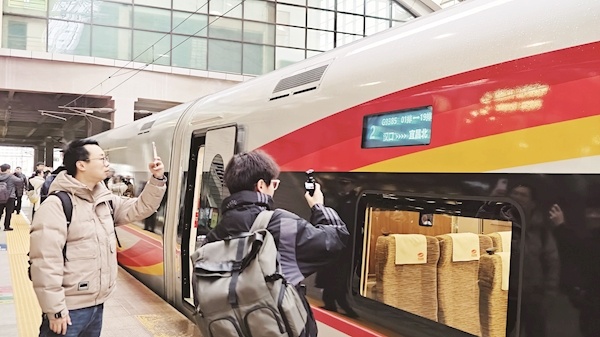 沪渝蓉沿江高铁武宜段开通进入倒计时。12月23日,媒体记者团从汉口站登上G9385次列车,尝鲜体验这条新高铁。本次试乘的G9385次列车采用复兴号CR400AF-S智能动车组,行驶时平稳舒适,车内显示屏显示最高时速达350公里。该线路开通后,将打造“汉襄宜1小时高铁圈”,汉口到宜昌最快仅需69分钟。