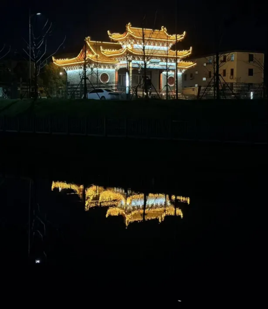 如今的茨林水库生态公园,不仅成为当地村民休闲娱乐的首选之地,更吸引了不少游客前来拍照打卡,人气十足。夜幕降临时,岸边“澴西明珠 古埠陡岗”的立体灯牌亮起,光影流转间勾勒出水库轮廓,与璀璨夺目的陡岗埠戏楼、波光粼粼的湖面交相辉映,美轮美奂。