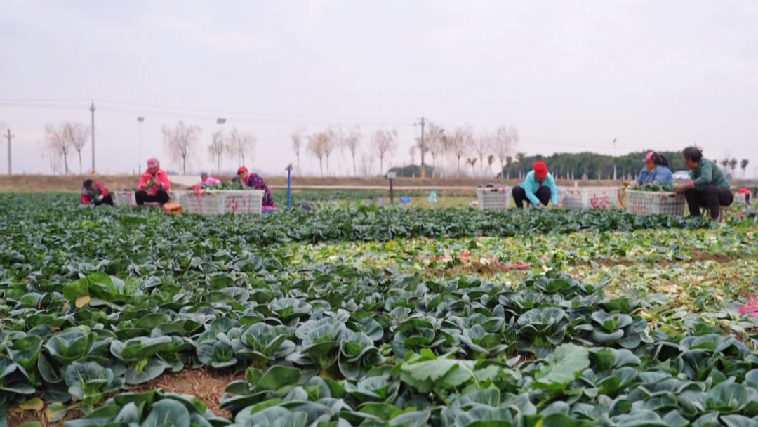 在花西乡湾湖村的蔬菜种植基地,连片的“苏州青”长势喜人,棵棵青菜敦实整齐,叶色深绿、叶片厚实,望去满眼生机。村民们三三两两地分散在田间,采收、分拣、装筐……忙碌的身影里,满是收获的喜悦。