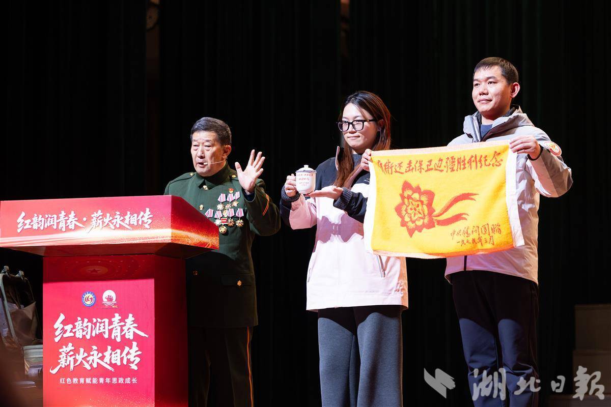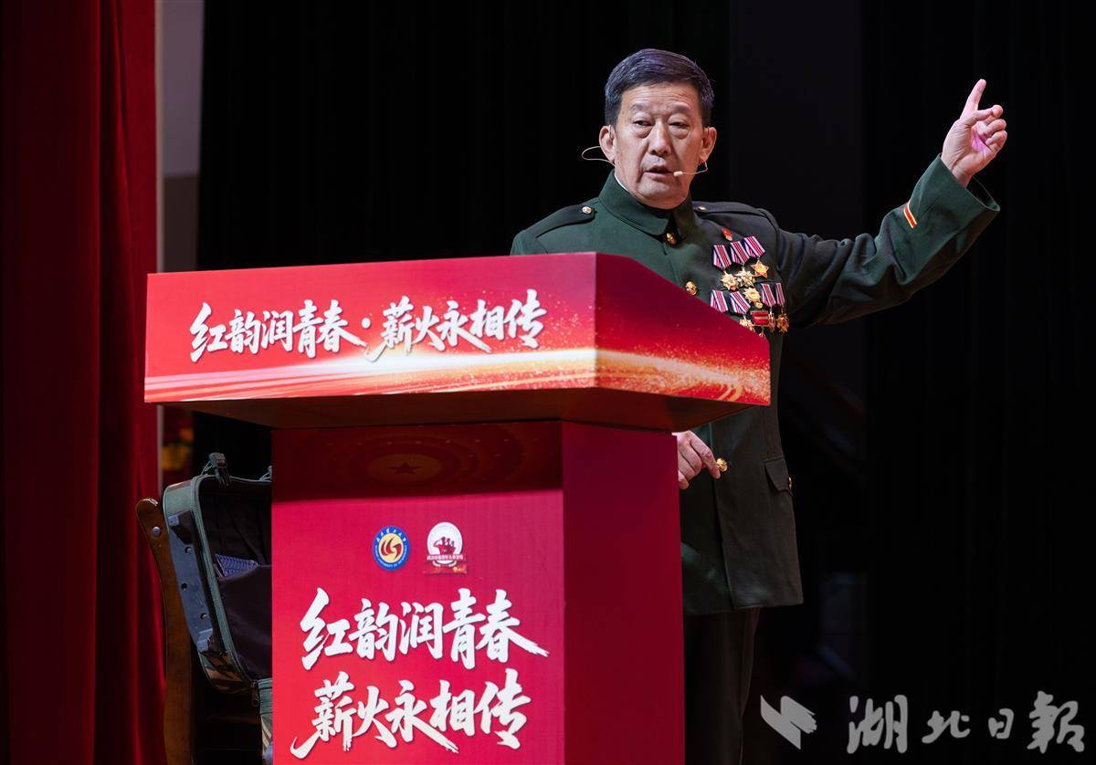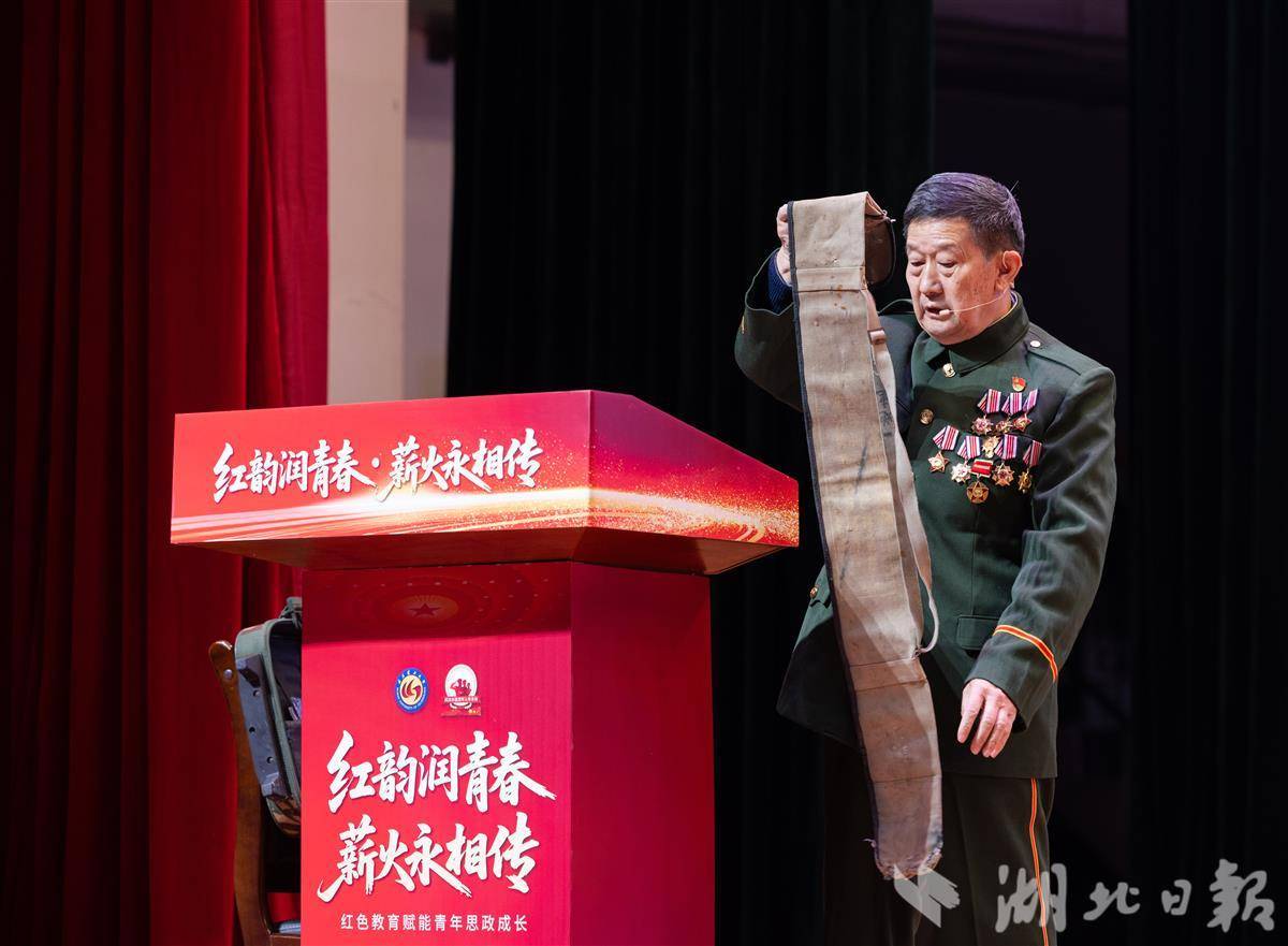 12月24日是长津湖战役胜利75周年纪念日,武汉理工大学近千名学生通过“听老兵故事、看红色展演、谈自身感悟”,深化对红色历史的理解,增强爱国情怀与责任担当。原武警湖北省总队副司令员刘耀来现场深情寄语青年学子:“少年强,则中国强!”(湖北日报全媒记者 薛婷 汤玮玮 摄)