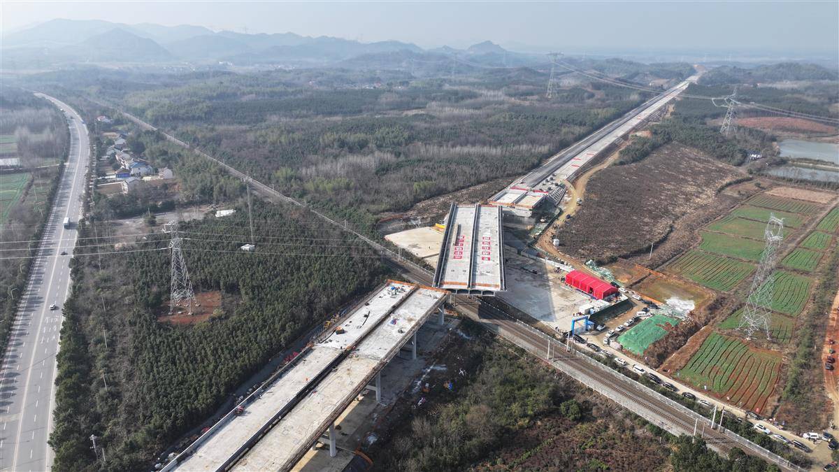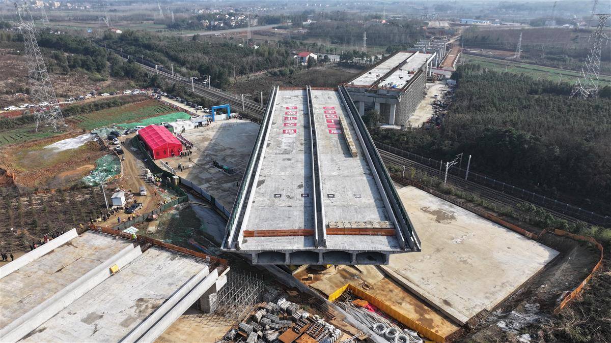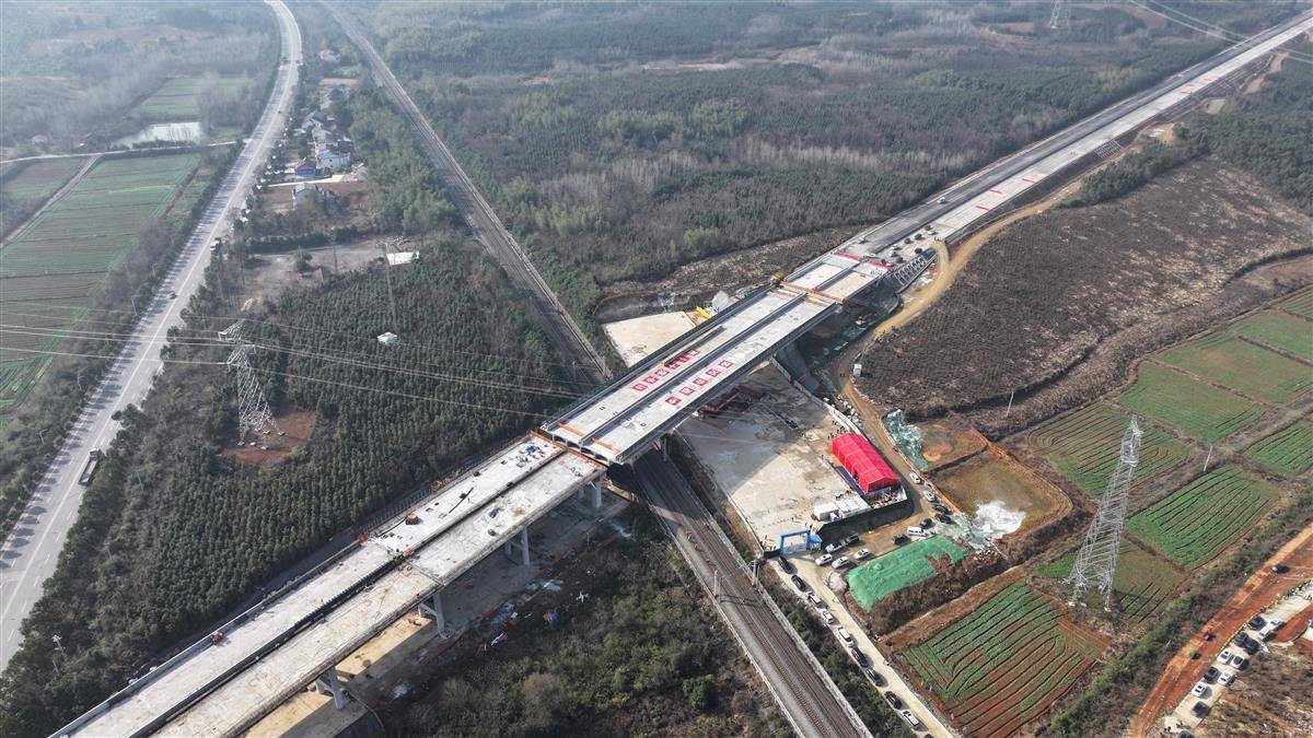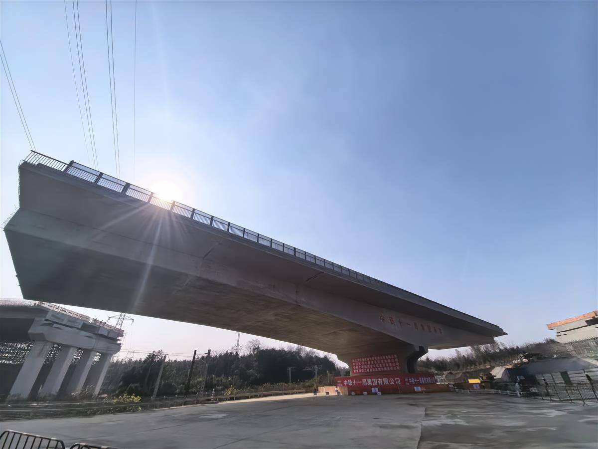 12月25日,由湖北交投集团投资建设,武汉武铁工程项目管理有限公司代建,中铁十一局承建的咸宁桂花至汀泗高速公路(咸宁南外环)与京广铁路交叉工程转体桥,经过70分钟,顺时针旋转60度后,成功跨越京广铁路,顺利完成转体。
