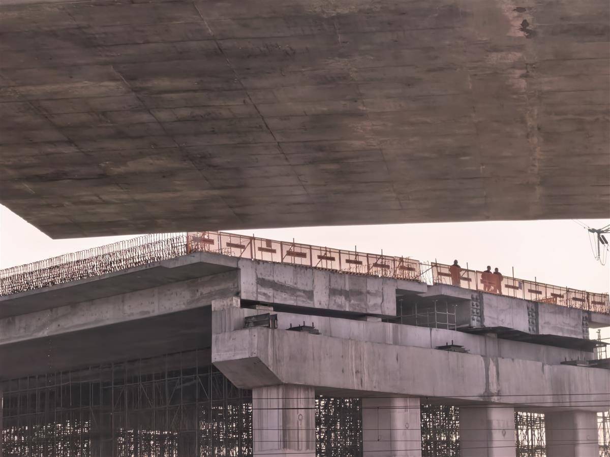 即将转体完成的桥梁。(湖北日报全媒记者 陈迹 摄)