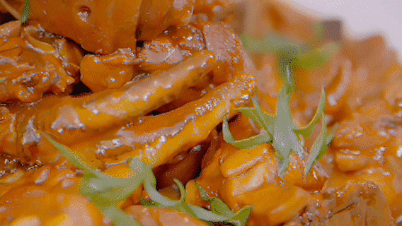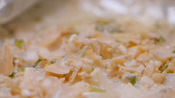 在江海一锅·南通菜,大厨将处理好的鸡肉斩块下锅,仅以家常五味调料,旺火烹炒,焖至香气四溢、色泽油亮,一道“江苏十三名菜”之一的黄焖狼山鸡便热气腾腾地出锅。金佳悦品尝后赞不绝口:肉质紧实却不柴,连鸡皮都嫩滑弹润。作为当地的代表名菜,这道菜里没有复杂技法,却浓缩了南通人家常餐桌的深情。