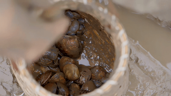 海上迪斯科,踩出文蛤香。循着“一起跳舞”的线索,吴鹏来到了南黄海之滨的如东小洋口。双脚陷入柔软的滩涂,随着潮汐的节奏踩踏、跃动,被称作“天下第一鲜”的肥美文蛤渐渐显露真容——原来这有趣的“海上迪斯科”竟是在采捕文蛤。在朋友的带领下,吴鹏也踏入滩涂中,亲身感受大海的慷慨。