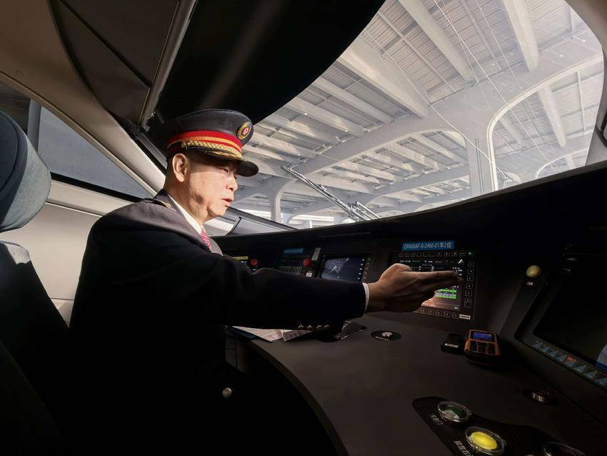 在飞驰的G6800次列车上,中国铁路武汉局高铁司机骆思文平稳推下牵引手柄。这位安全行车十三载的“老高铁”望着窗外感慨:“2012年刚上车时开的是CRH380,后来换成了CR400,现在握着智能复兴号手柄。一代代车在变,速度在提,安全始终是第一。真想有一天,能开上未来的CR450。”