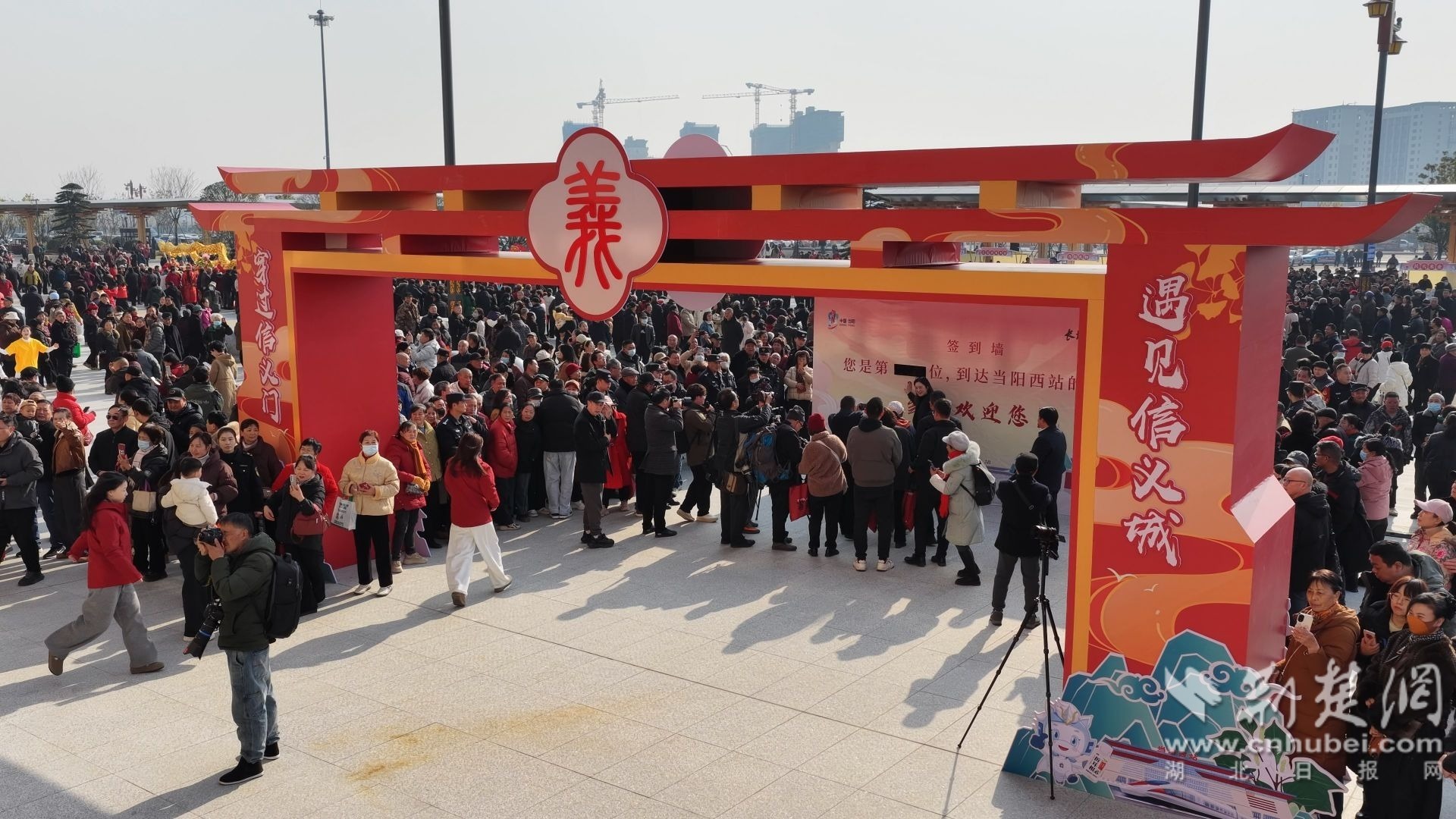 宜昌市旗袍协会的游客即兴展开模特走秀,旅游博主架起设备直播盛况,不少游客自发加入载歌载舞,免费热饮与志愿者咨询服务更让暖意融融。当阳西站内的 “义门” 打卡点、文化主题墙,也成为游客争相拍照留念的热门场景,大家用镜头记录这份高铁首游团的惊喜。