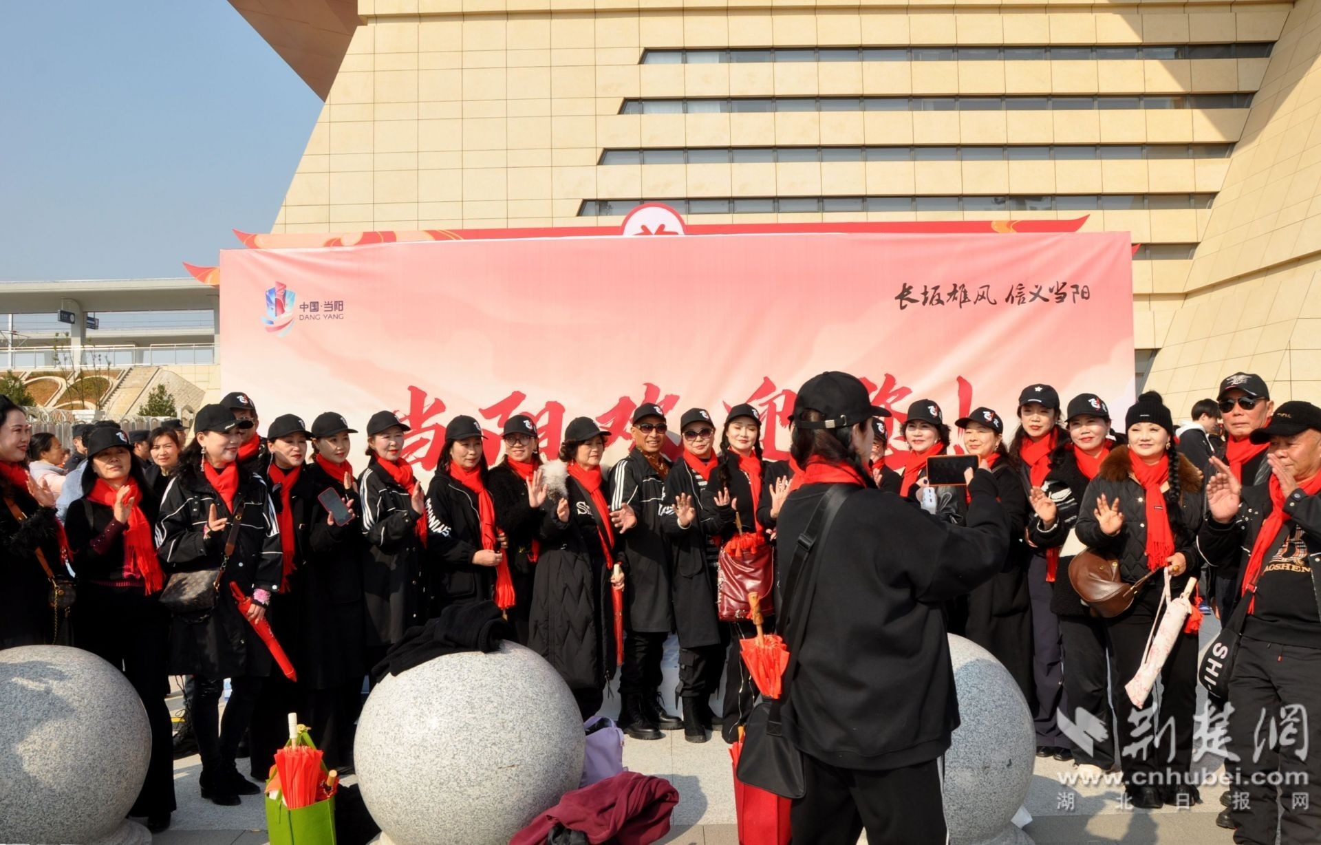 沪渝蓉高铁开通首日350 人首游团打卡义城当阳。(闻玉强 摄)