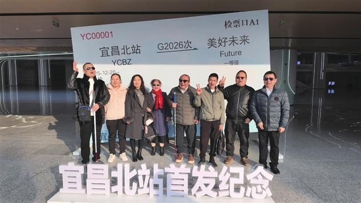 12月26日上午9点,宜昌北站崭新的广场上,几声盲杖点地的脆响,在开阔的空间里传开。