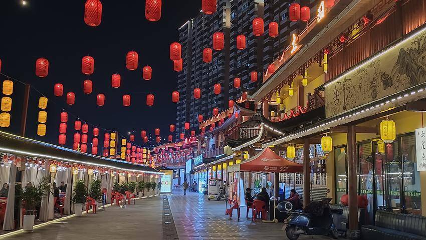 湖北日报客户端讯(通讯员 何启发 杜雪平)12月27日的鹤峰容美之夜,华龙半岛风情街被暖暖的烟火气所包裹。大红灯笼沿街高悬,映着游子归乡的匆匆步履,也照亮了一张张含笑的面庞。新年的脚步踏响街巷,他乡回归的游子与本地乡邻一同走进这团圆的驿站。