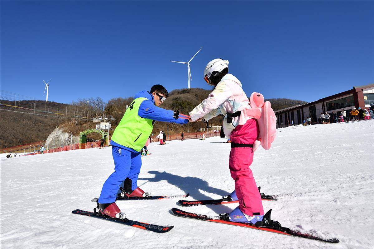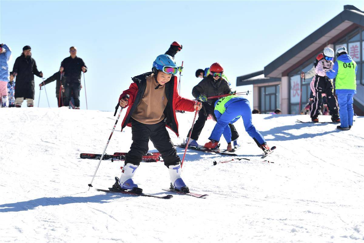 初级雪道上,7岁的乐乐在教练指导下,练习基础动作,一旁的刘女士用手机记录下儿子初次滑雪的喜悦。“孩子一直盼着玩雪,特意带他来体验。”刘女士笑着说,雪场配套特别贴心,教练专业又有耐心,孩子既能感受冰雪运动的快乐,又能亲近自然。