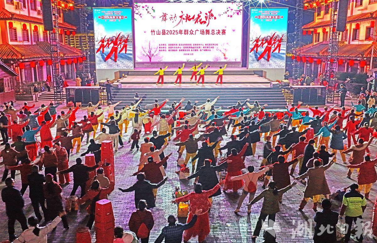 12月27日,十堰市竹山县桃花源街区,2025年度全县“舞动桃花源”群众广场舞总决赛火热进行,以此迎接2026年的到来。