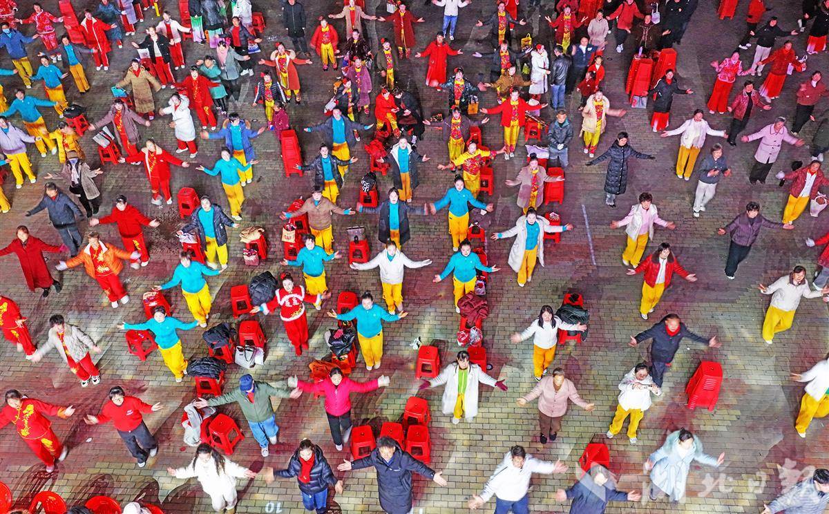 12月27日,十堰市竹山县桃花源街区,2025年度全县“舞动桃花源”群众广场舞总决赛火热进行,台上台下一起跳起欢快的广场舞,迎接2026年的到来。全县乡镇(场、区)共50多支队伍、1000多人踊跃参加。此次活动,旨在以赛事为契机,丰富群众精神文化生活,展现时代精神风貌,助力全县文旅产业高质量发展,并以此推动广场舞与竹山非遗文化、桃花源文旅元素融合,打造具有本土辨识度的群众文化品牌,提升群众文体生活获得感。(视界网 邵义龙 摄)