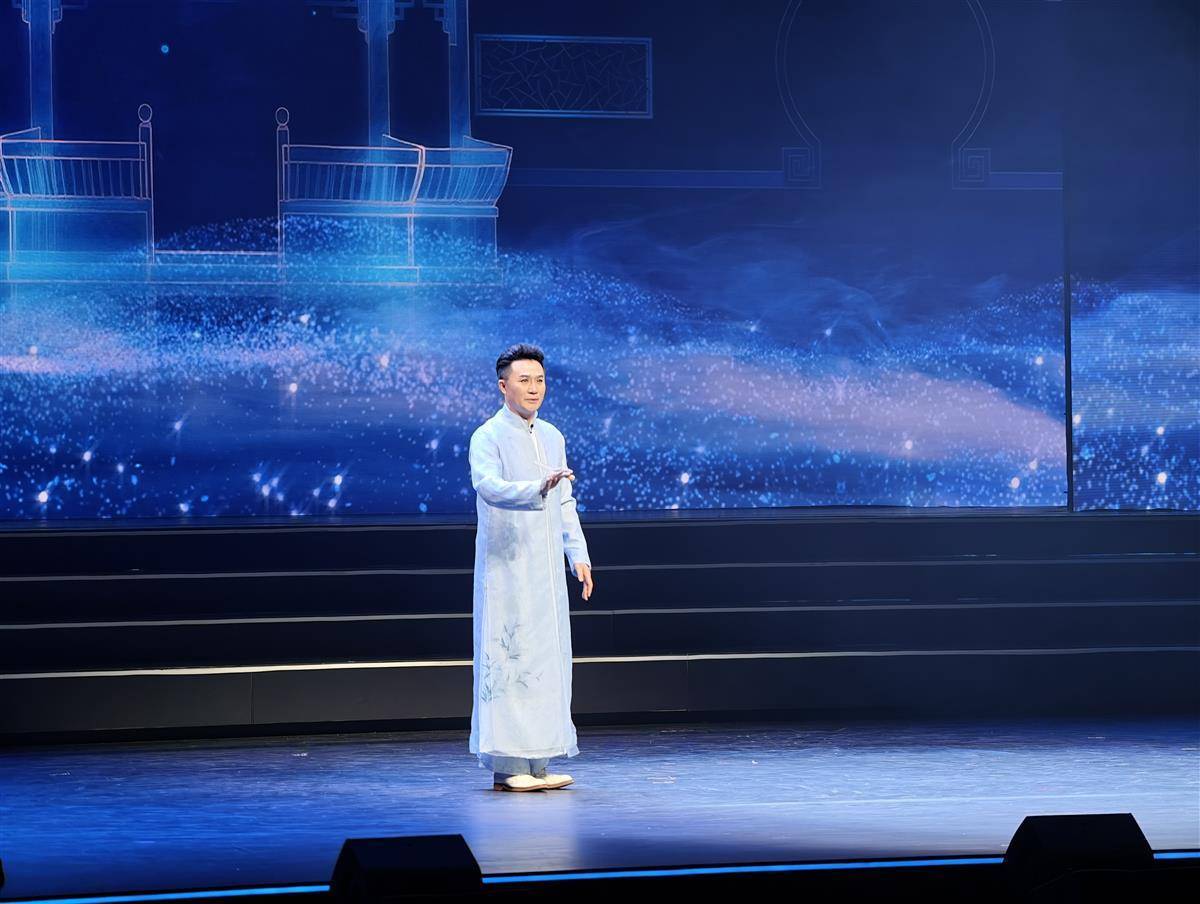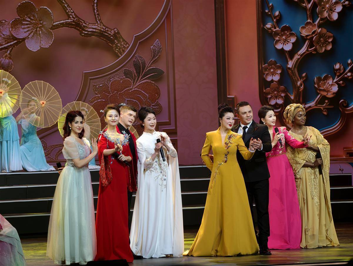 黄梅戏联唱《黄梅飘香》串联《女驸马》等经典,“梅花奖” 得主程丞领衔与中外演员跨界演绎;随后,北京京剧院杨少彭与康静合演《沙家浜》,老生唱腔苍劲有力;浙江小百花越剧院李云霄带来越剧《打金枝》,婉转腔韵尽显越剧柔美;昆剧名家张军演绎《牡丹亭》,水磨调里藏着古典雅致;上海京剧院蓝天以国潮新韵唱响《新定军山》,为经典注入当代活力,经典红色旋律《红梅赞》的登台更将氛围推向高潮,演员们以醇厚戏腔唱响革命情怀。