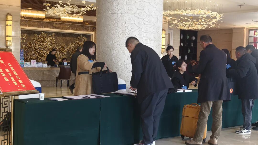 报到现场秩序井然、布置一新,政协委员们在工作人员的引导下,有条不紊地完成签到登记、信息核对、领取会议证件和文件资料等手续,整个报到流程高效流畅。