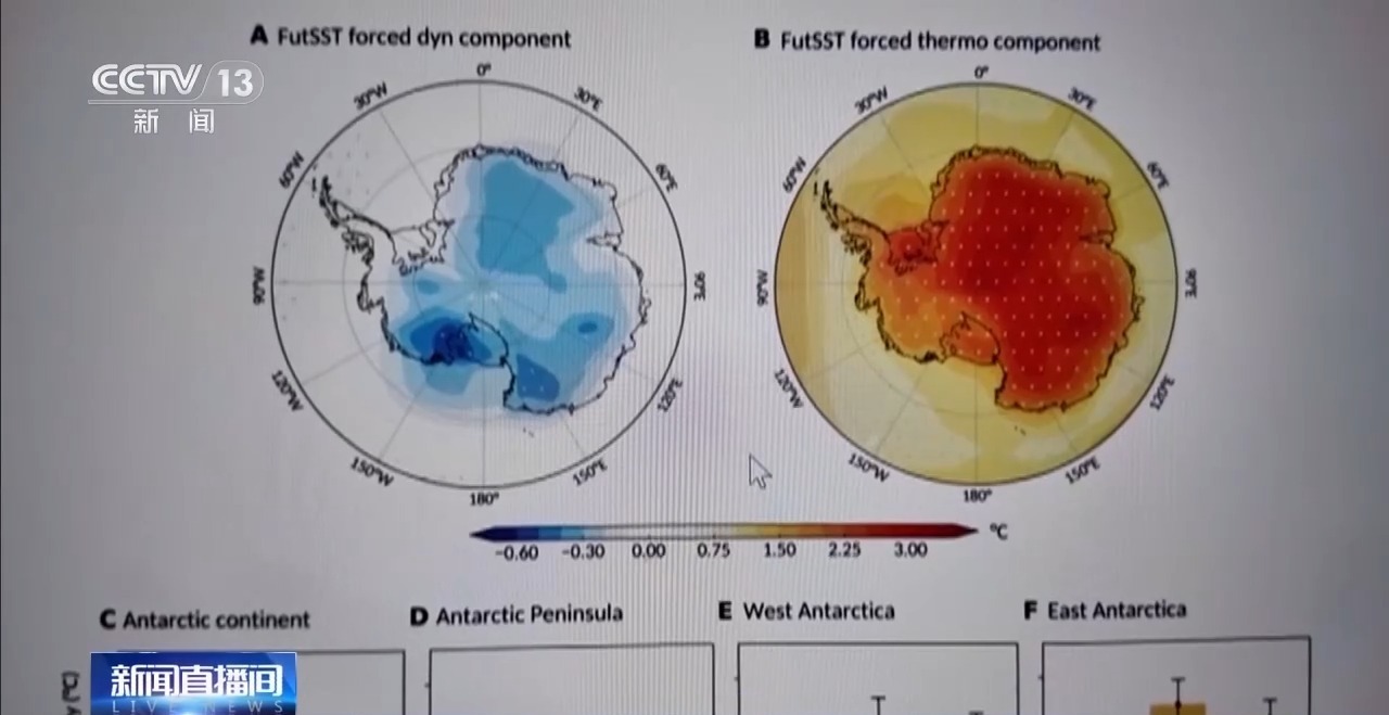 中国气象科学研究院全球变化与极地研究所所长 研究员 丁明虎:由于南半球咆哮西风带的隔离作用,人类活动的影响,主要是通过海洋表面的升温将热量传输到南极,这也是为什么南极变暖滞后于全球其它地区的原因。同时,我们还发现,由于海温持续升高,未来南极也会像北极一样,逐步出现放大效应,也就是增暖速度会加快。这项研究的意义: