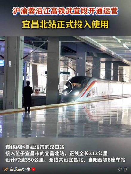 2025年12月26日,沿江高铁武汉至宜昌段正式开通,宜昌北站正式投入运行。