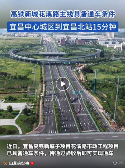 2025年9月,宜昌高铁新城片区“四横三纵一环”主干路网基本成型,内外互联互通的城市交通体系构建完成。