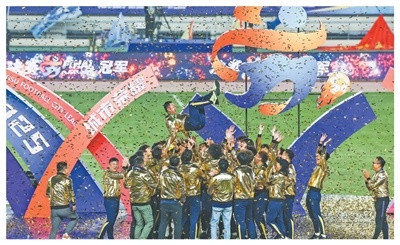 泰州队庆祝“苏超”夺冠。新华社记者 李博摄