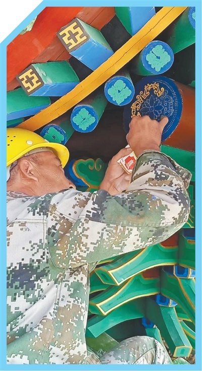 2011年,“榆社古建彩绘技艺”被认定为山西省非物质文化遗产。忆起过往,岳俊德很欣慰:“要把汉纹锦彩画传承下去,不能把老祖宗留下的好东西丢了。一代肯定更比一代强。”
