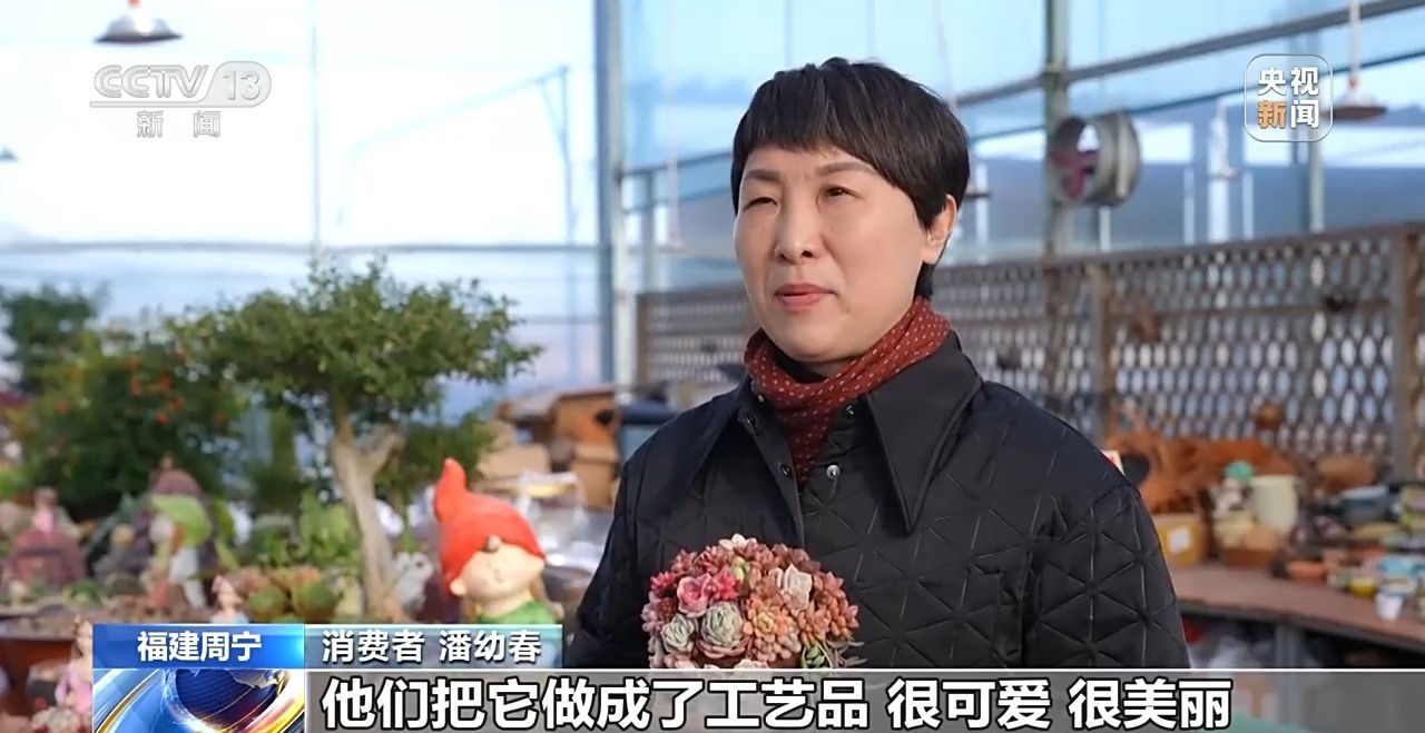 消费者 潘幼春:他们把它做成了工艺品,很可爱很美丽,而且价格又不贵,送给亲友也好,自己摆在家里也好,真的很合适。