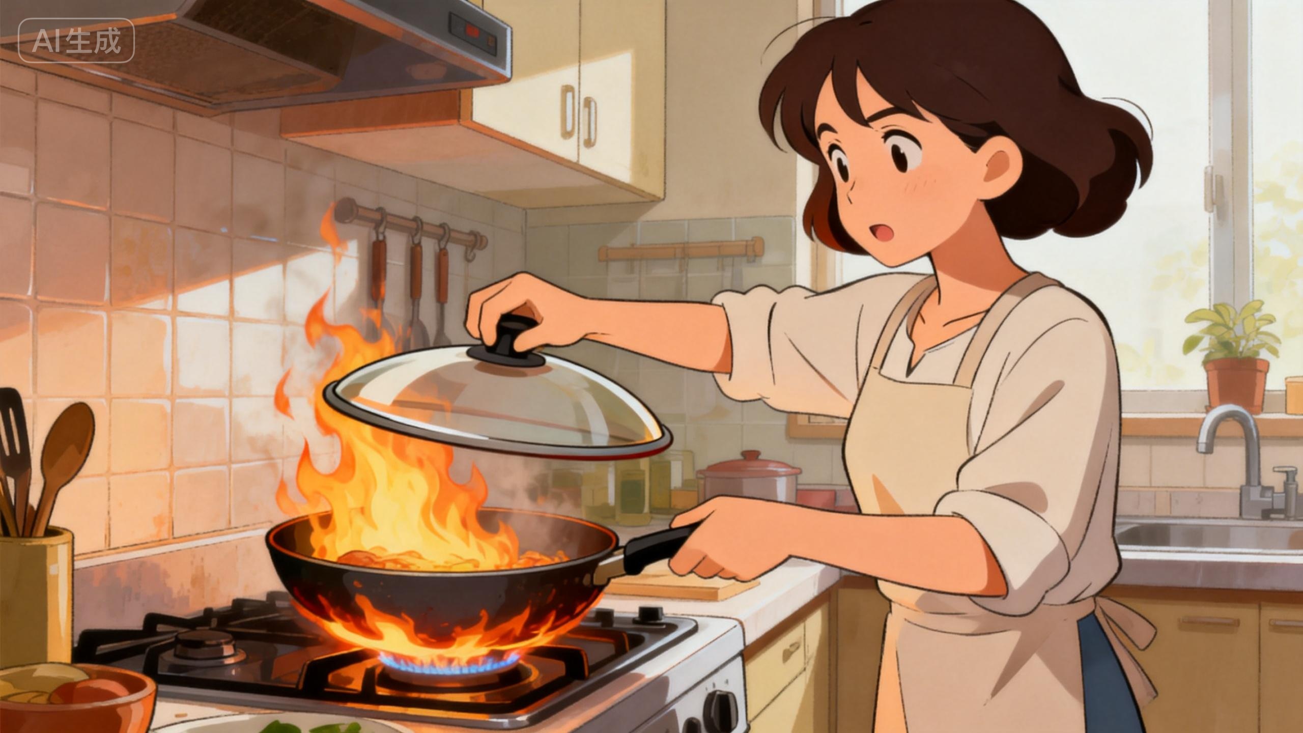 家庭厨房火灾中,因油锅过热或油溢起火所占比例居高不下。许多人情急之下采取错误方式,使小火酿成大灾。正确处置方法分三步:首先,迅速关闭燃气灶或电磁炉电源,切断热源。紧接着,用锅盖沿锅边水平推盖,严密盖实。如果找不到锅盖,可将手边大量青菜投入锅中,或用浸湿的抹布、灭火毯完全覆盖。火熄灭后,务必等待锅体充分冷却后再做处理。