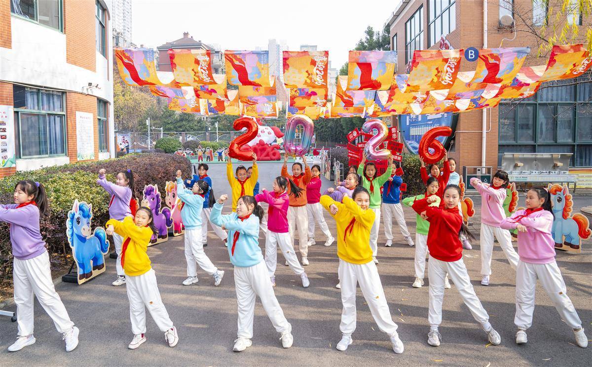 12月30日,武汉市洪山区未来实验外国语学校美林校区,学生们以社团、班级特色展示活动迎接2026新年到来。教师们带着孩子一起装扮学校、一起准备游戏材料、一起排练新年舞蹈……大家满怀希望,期待着新年的到来!在大家期待的目光中,孩子们身穿靓丽的服装,用滑板、街舞、非遗手工表演等形式大方展示自己的风采,迎接2026年的到来。(湖北日报全媒记者 魏铼 通讯员 雷迪 摄)