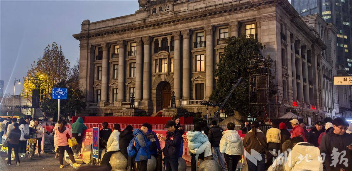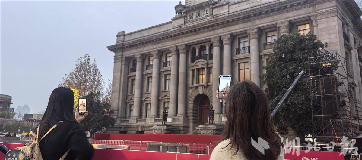 12月30日下午,江汉关钟楼前人潮渐聚。明晚,万众瞩目的跨年仪式将在这里举行。