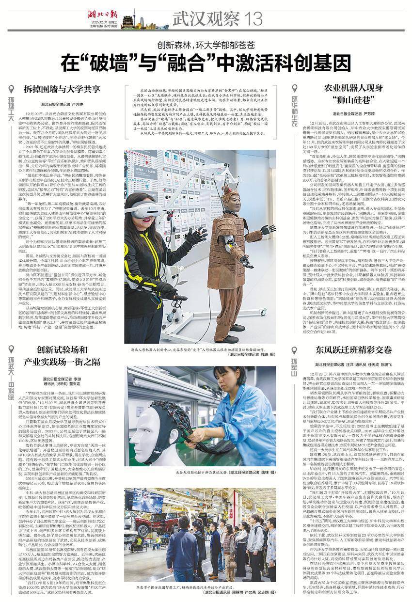 机制创新同步推进。洪山区组建了山水硅巷投资发展有限公司,探索市场化投运机制;深化与武汉大学、华中科技大学等高校的“名校名城”合作,共建校友创新大厦;构建“概念验证—加速载体—产业园”的梯次育成体系,预计明年将新增星创空间5个,促成校企合作超100项。