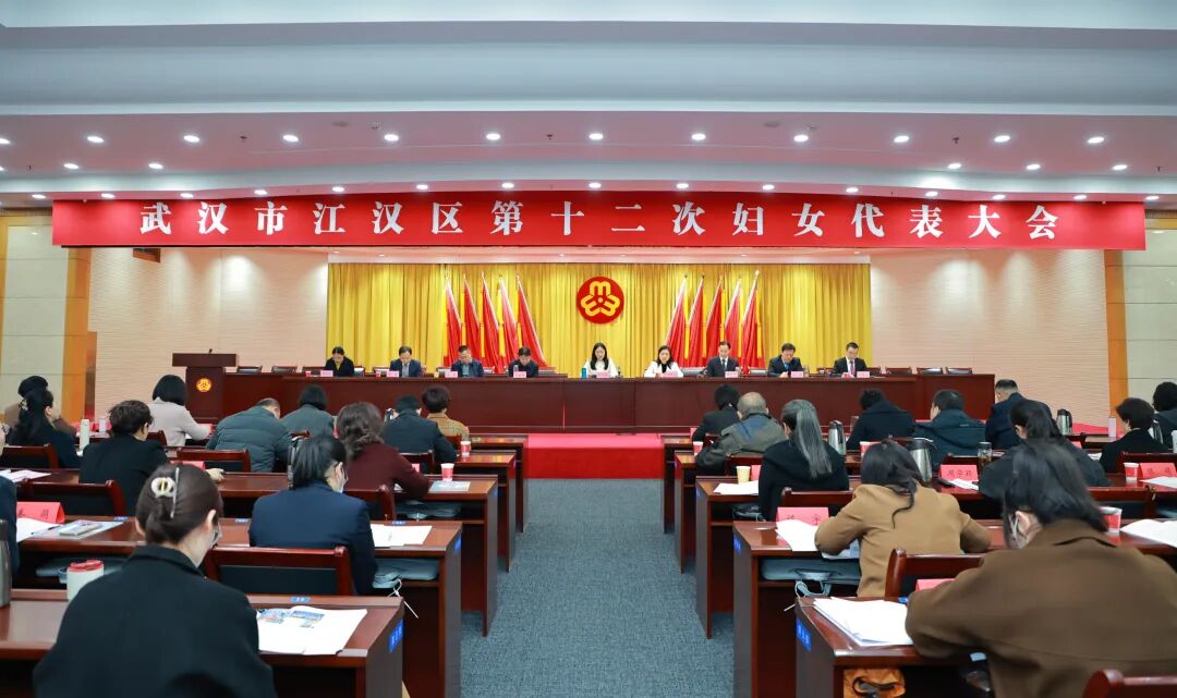 江汉区总工会负责同志代表人民团体致贺词。江汉区妇联负责同志代表区妇联第十一届执委会作工作报告。