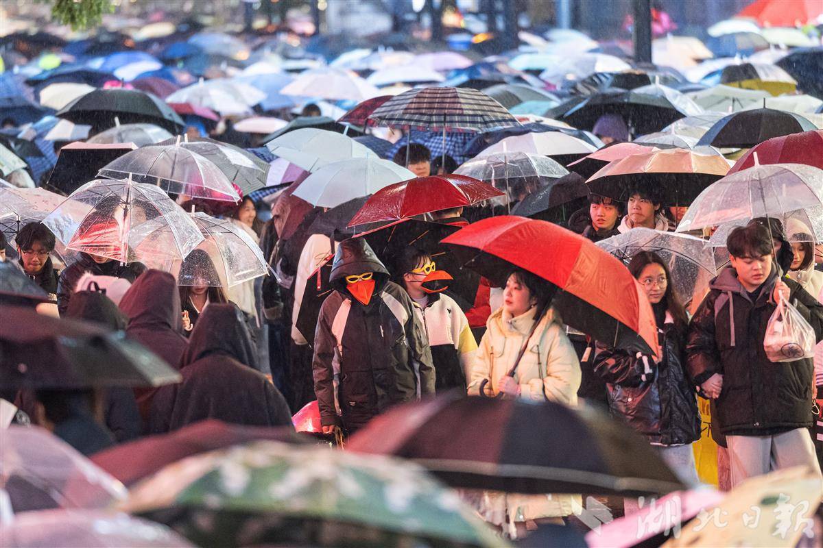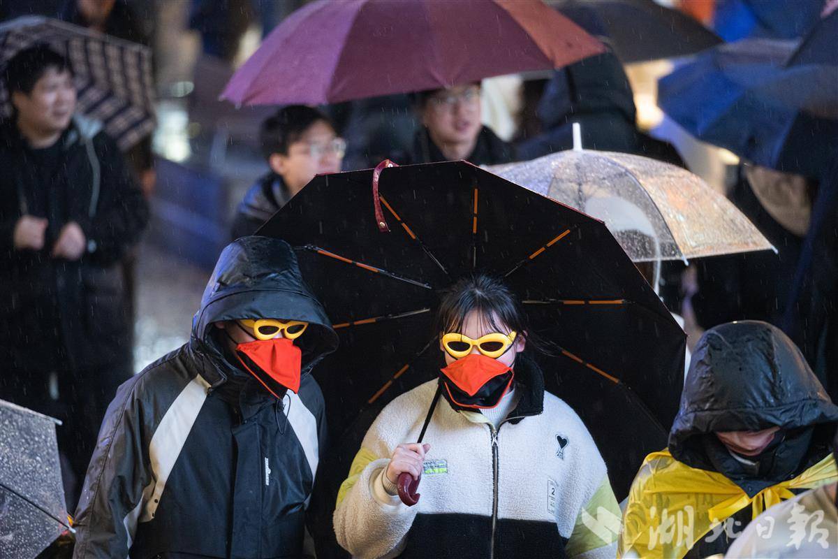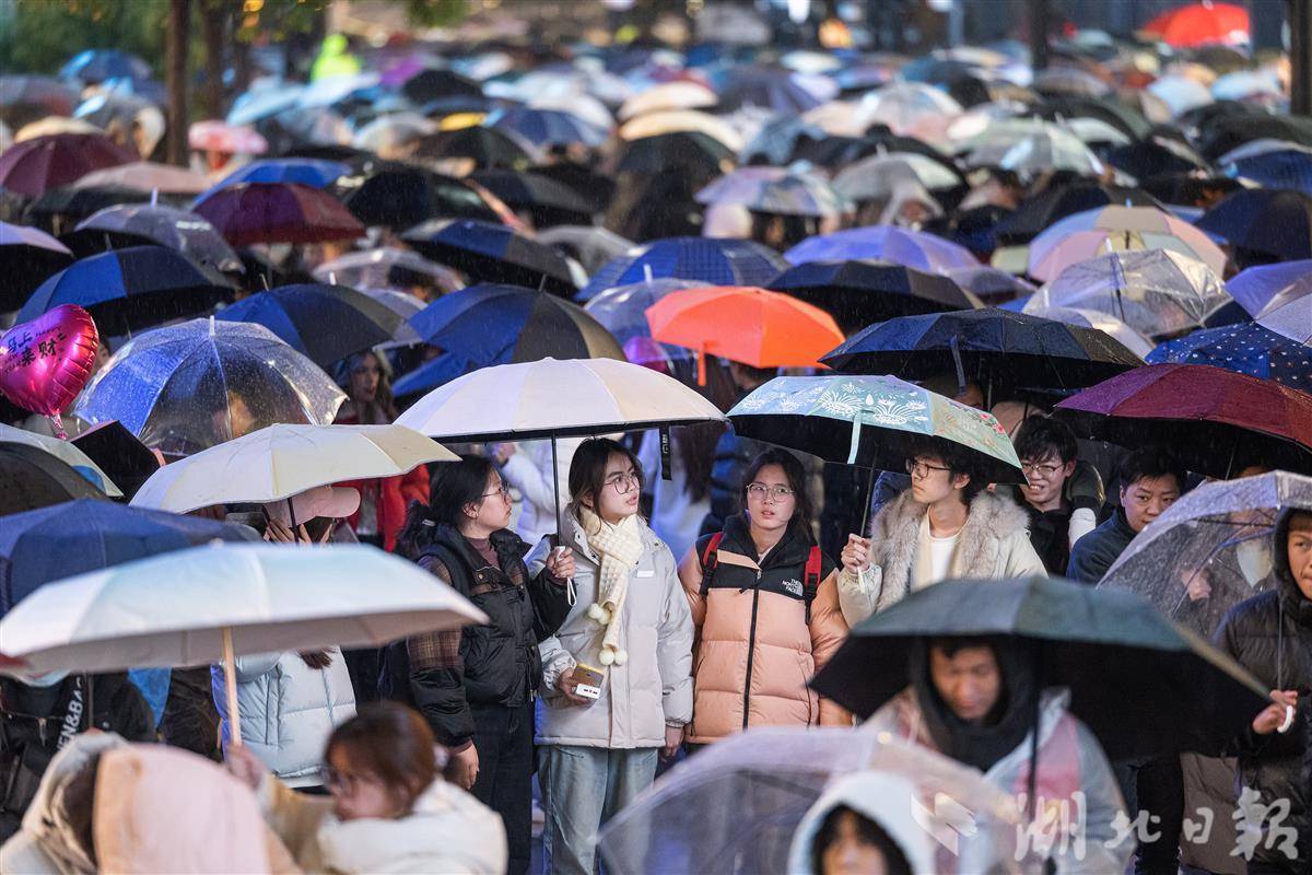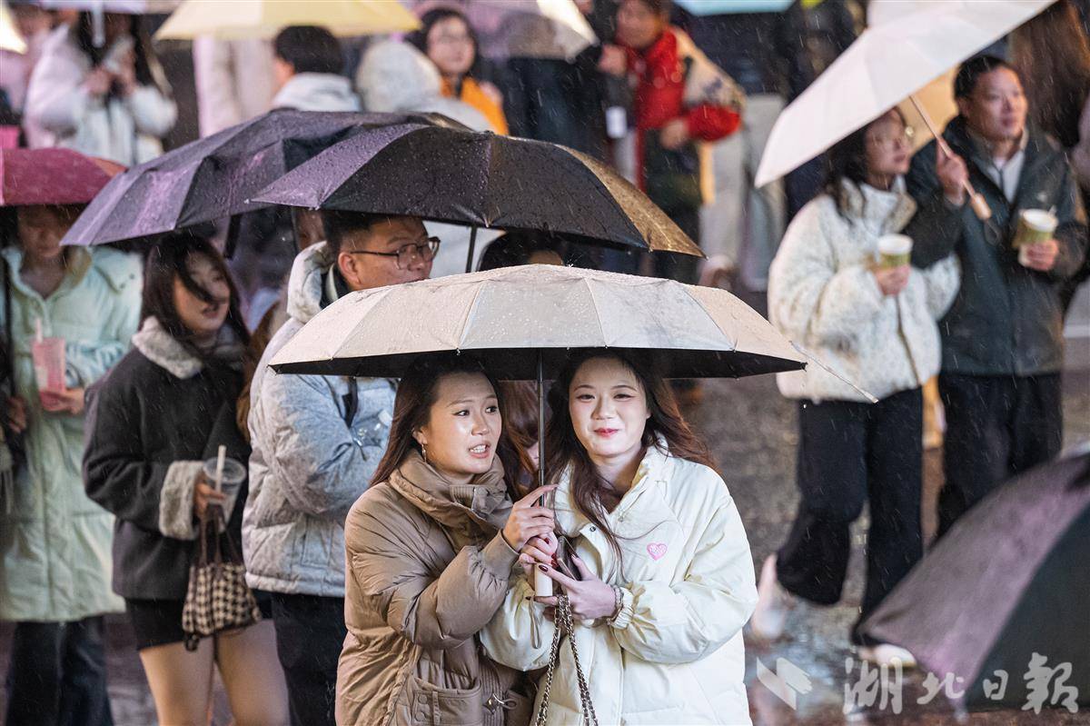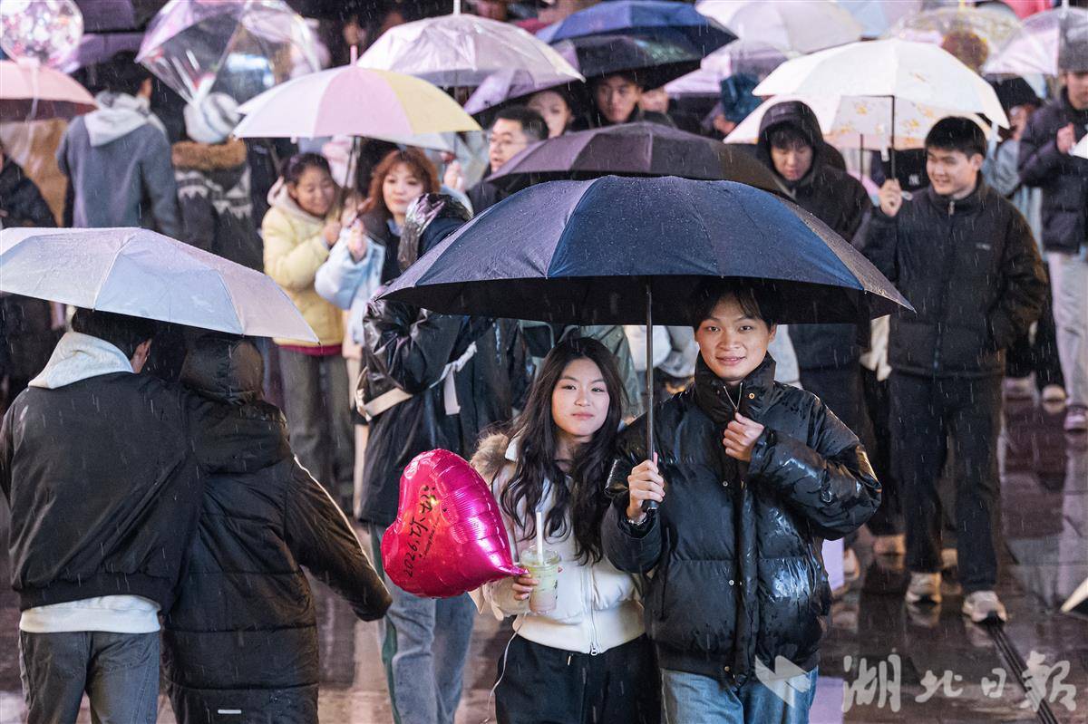 2025年12月31日晚,武汉市江汉路步行街人头攒动,热闹非凡。冬日的一场冬雨并没有浇灭人们逛街的热情,数万人手持雨伞从四面八方涌向这里,共同等待新年的到来。(湖北日报全媒记者 任勇 摄)