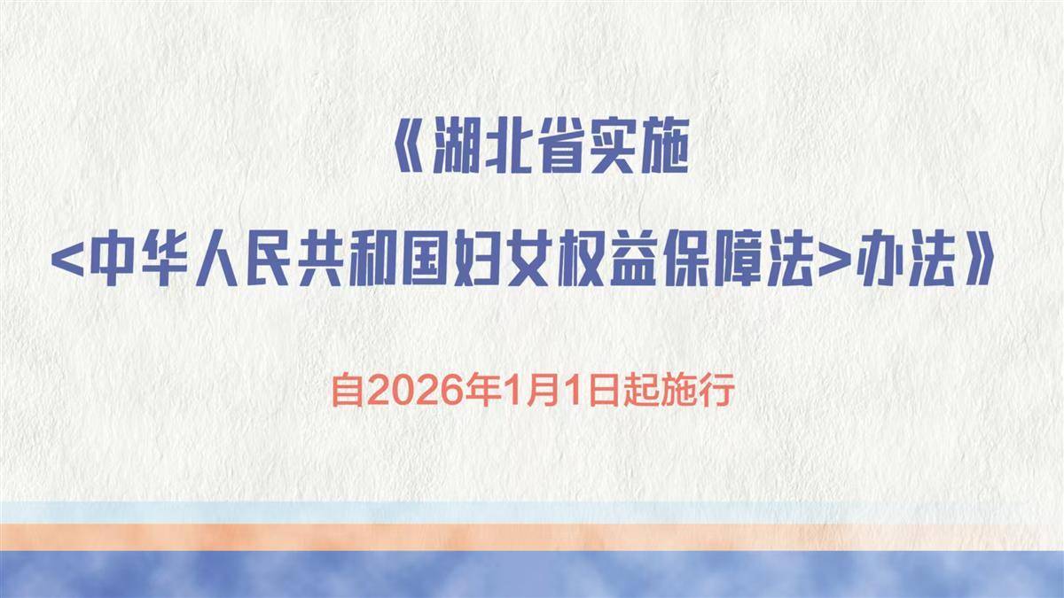 湖北日报讯(记者王际凯)2026年1月1日起,新修订的《湖北省实施〈中华人民共和国妇女权益保障法〉办法》(以下简称《办法》)正式施行。