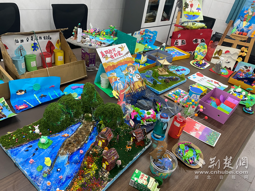 “创意献礼庆元旦”是活动亮点。师生围绕环保主题创作绘画、手工、文字等作品,用废旧材料制作生态模型、环保装饰等,尽显巧思。各班级打造“班级生态角”营造微型生态氛围,筹备小组评选“最佳生态角”,激发班级参与热情。