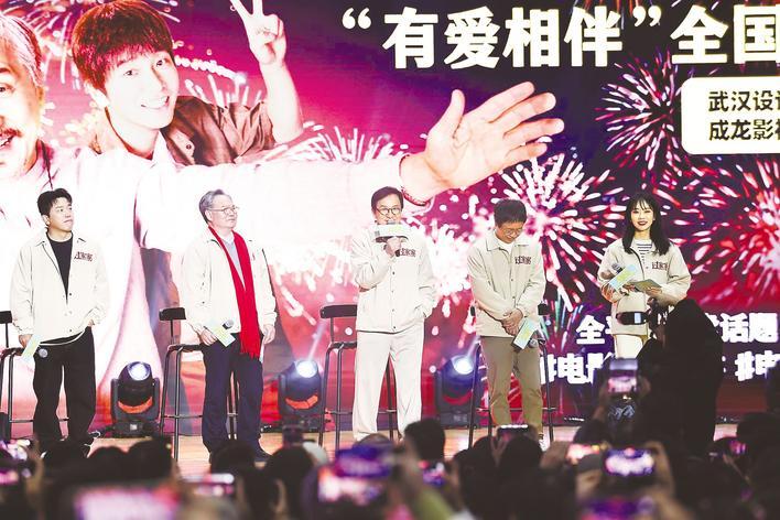湖北日报讯 (记者张歆、通讯员陈维、杨志明、实习生李沛雯)“有爱相伴,温暖新年!”1月1日,著名影星成龙携电影《过家家》主创团队前往武汉设计工程学院路演,现场热闹非常。