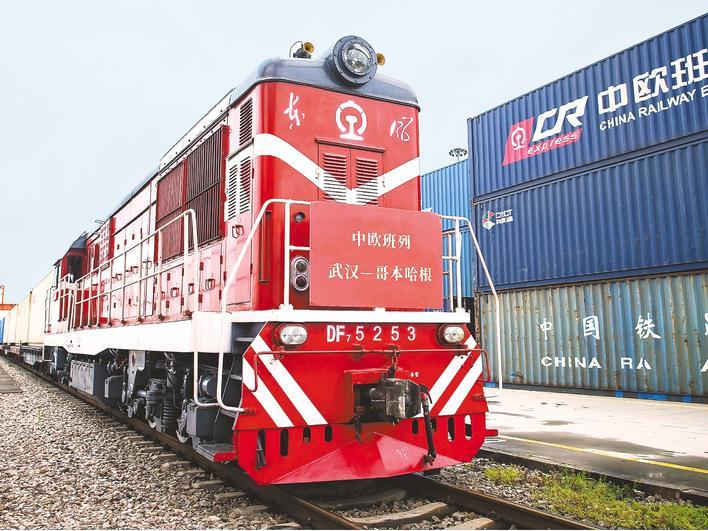 中欧班列(武汉)从中铁联集武汉中心站启程,开往丹麦首都哥本哈根。 (受访单位供图)