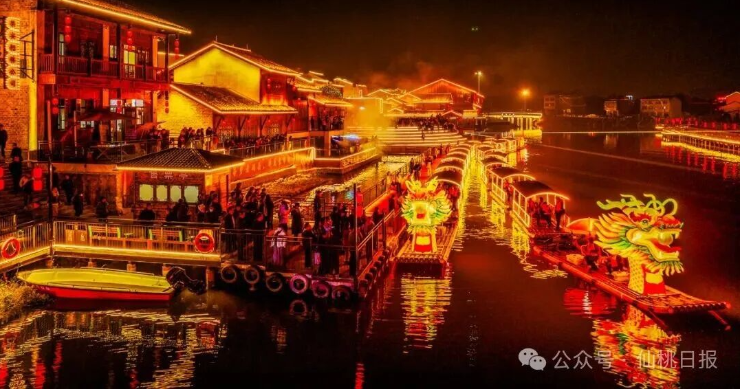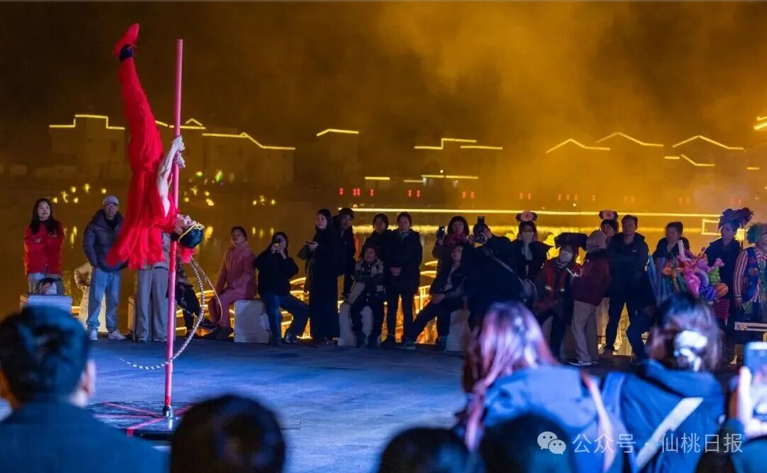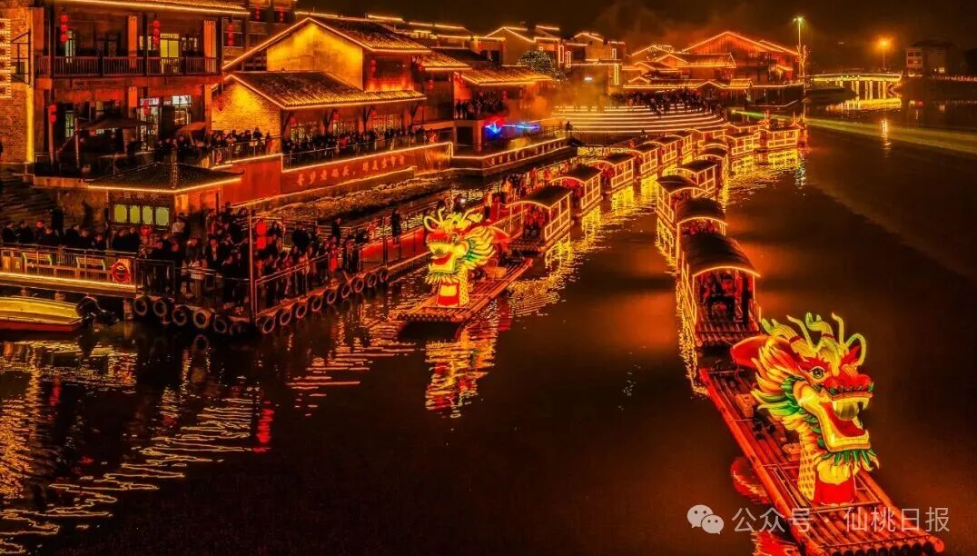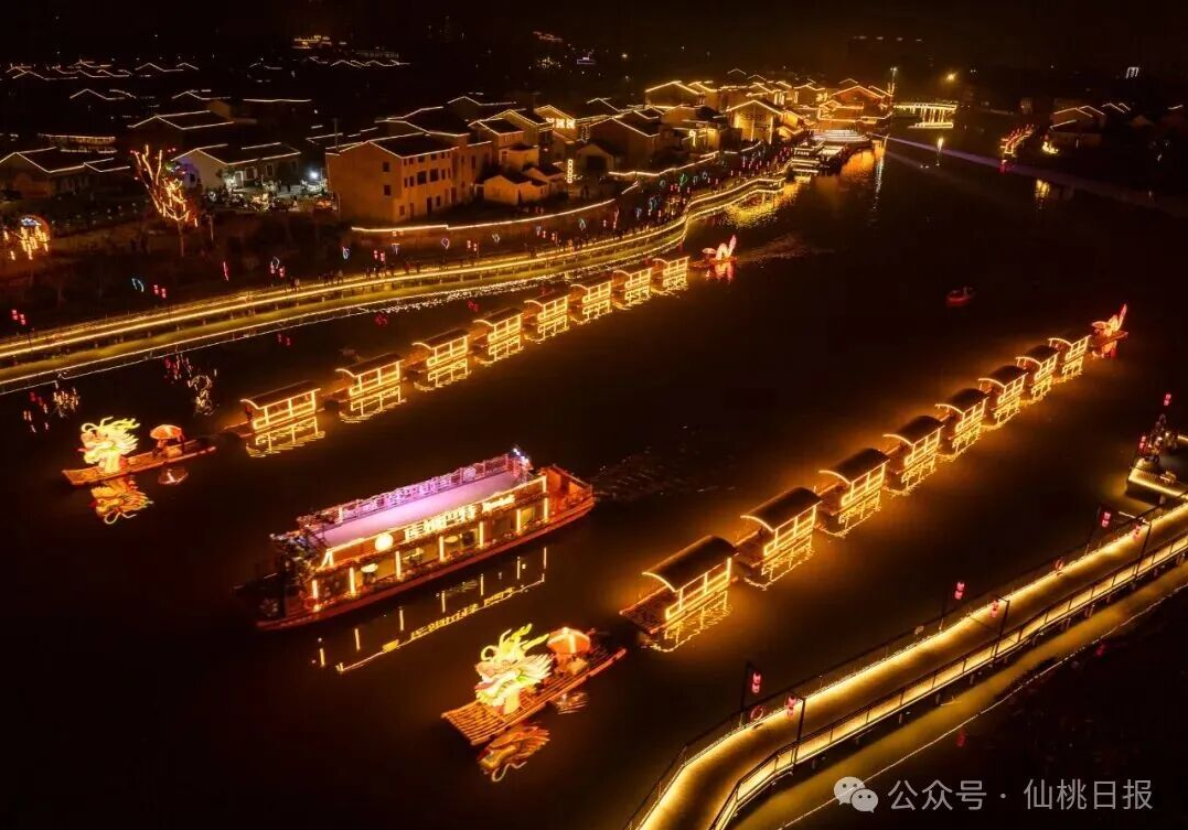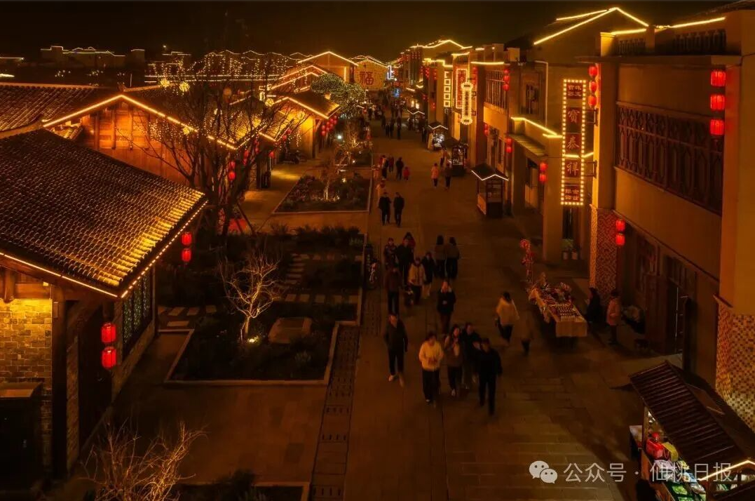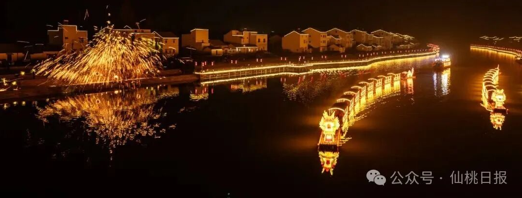 袁市村在元旦期间开启了跨年狂欢,水上舞台与岸上街区联动,专业歌手登台献唱,市民游客在烟花中倒数迎新。2026年仙桃迎新欢乐走(跑)活动,以袁市村文化广场为起点,8公里赛道串联至江滩公园,集中展示城市生态与农文旅体融合成果。