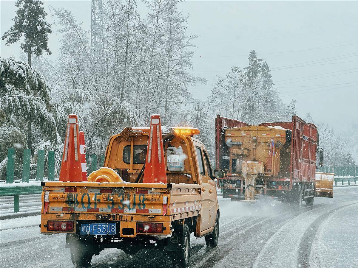 元旦出现降雪天气,湖北省各级交通运输部门启动冰雪天气应急预案,按照即下即清、雪中路通、雪停路畅、雪后路安抢险处置原则,全员上路坚守一线,及时清除路面冰雪。采取歇人不歇车、多路段同时推进,分班次轮休轮岗不间断作业,利用清雪铲、平地机、撒盐机等机械抛撒融雪盐,清理积雪除冰,提高清雪效率。