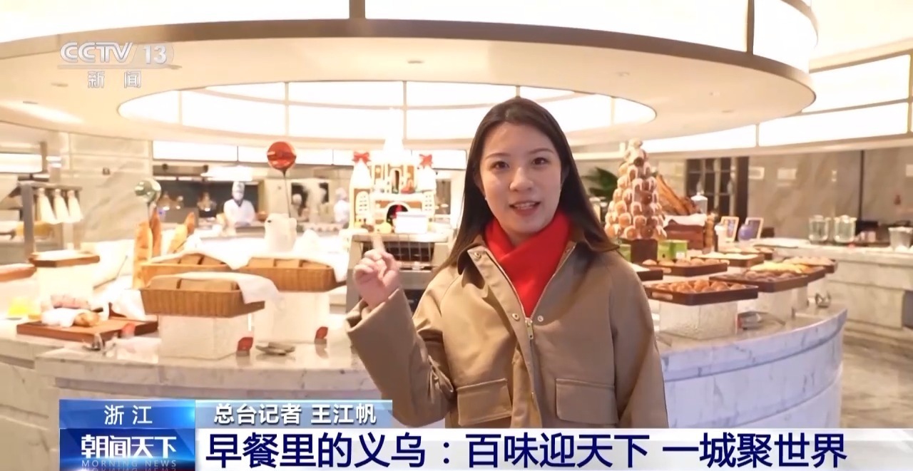 总台记者 王江帆:看过了老义乌人的早餐,再来看看新义乌人的早晨。这家面向国际客人的酒店里,美食地图早已超越了国界。