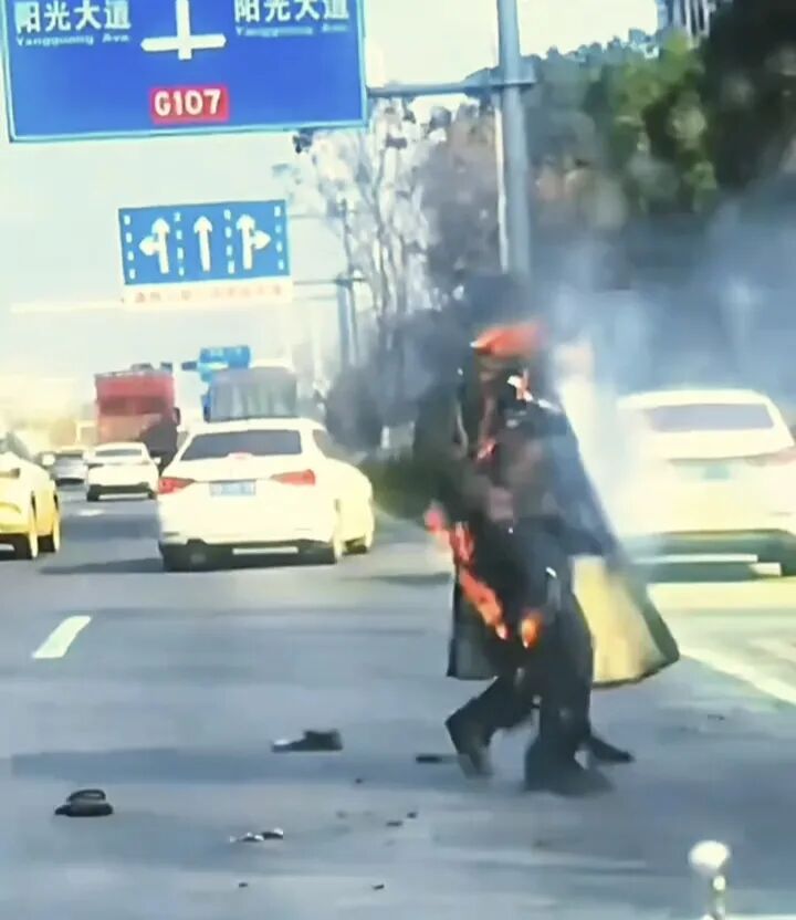 1月2日上午,寒风凛冽,就职于孝昌梦里花园联合社的胡浩杰和沈双明驾车行驶在107国道肖港镇路段时,发现路边一位老人身上燃起火苗,火借风势,越烧越大,老人无助的原地转圈,两人随即停车,拉开车门冲了过去。