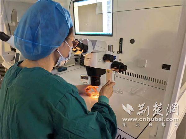 生殖医学中心医生在进行胚胎冷冻。通讯员供图