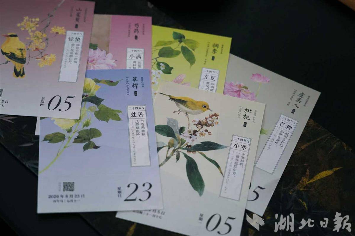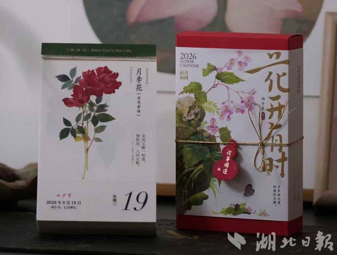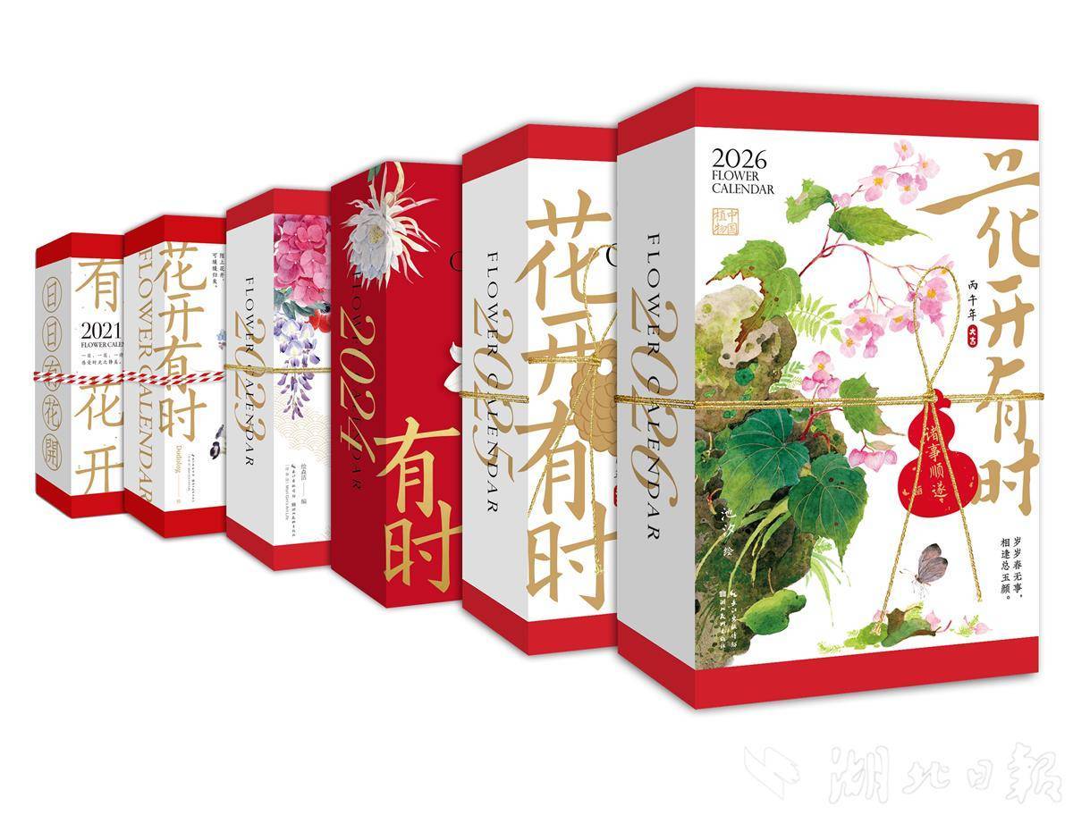 湖北美术出版社总编辑吴龙泉介绍,中国植物在传统文化中有着丰富的象征意义和文化内涵,日历通过优美的国风画作带领读者认识中国植物、欣赏植物的美,同时结合十二月令雅称、二十四节气、古诗词等,普及传统文化知识。“花开有时”系列日历融合雅致装帧与文化内涵,将审美体验、知识传播与文化浸润相结合,持续创新,积淀六年已成经典IP。