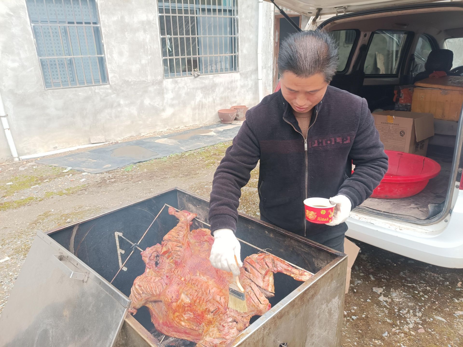 谈起自己从养羊到烤羊的经历,项森林笑着介绍,是一次巧合,2019年春天,一客户带几个朋友来爬山,因约好上门烤羊的师傅,临时有事来不了,无奈客户就请项森林帮忙烤羊,从没烤羊经验的项森林第一次烤羊,虽然味道不怎么样,但总算烤熟了,而且帮了客户的忙。那次以后,项森林就购买了烤羊工具,自己先免费帮客户宰羊和上门服务烤羊。有时生意淡季时,项森林就自己宰羊,请朋友和老客户上门试吃,锻炼自己的烤羊技术和听取大家对味道的点评和建议。