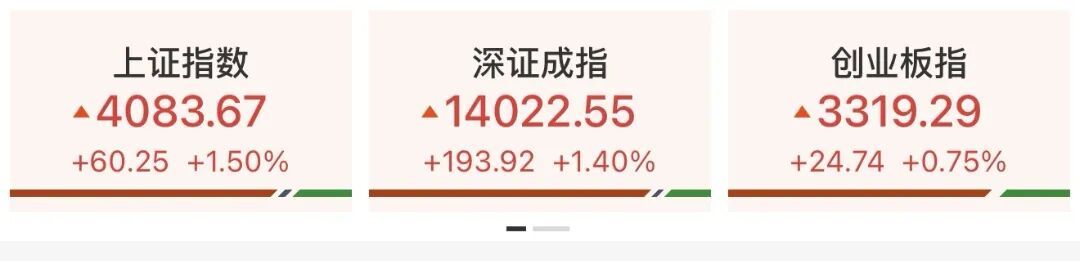 今天(1月6日),截至收盘,上证指数涨1.5%,报4083.67点,创逾10年新高;深证成指涨1.4%,报14022.55点;创业板指涨0.75%,报3319.29点。