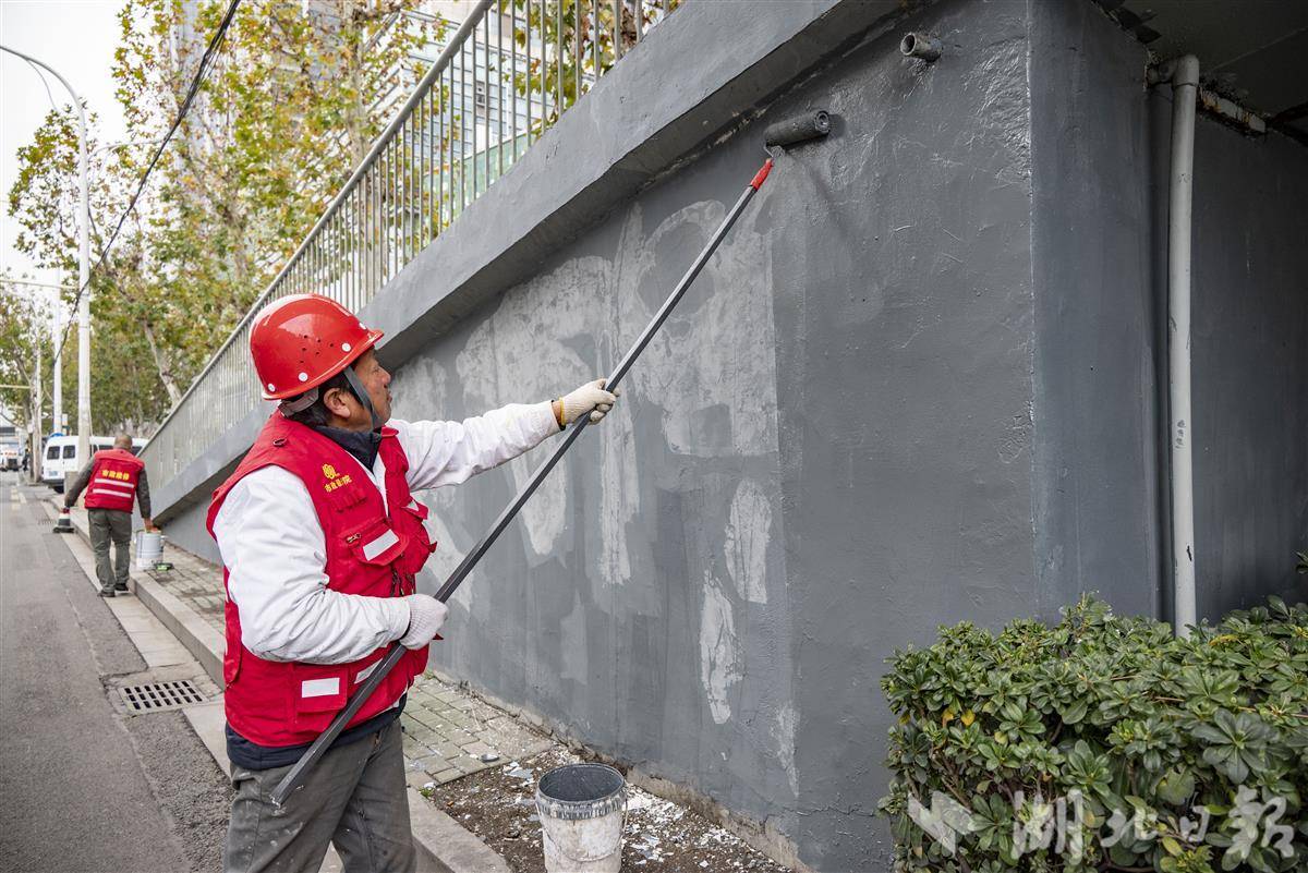 湖北日报讯(记者张竞恒、通讯员李军、王凯)城市人行天桥出现混凝土起皮、钢结构锈蚀等问题,不仅影响美观还存在安全隐患,该如何破解?1月5日下午,武汉市江汉区解放大道循礼门天桥下,施工人员正手持刮刀、砂纸仔细打磨护栏及根部,彻底清除锈迹与旧漆。