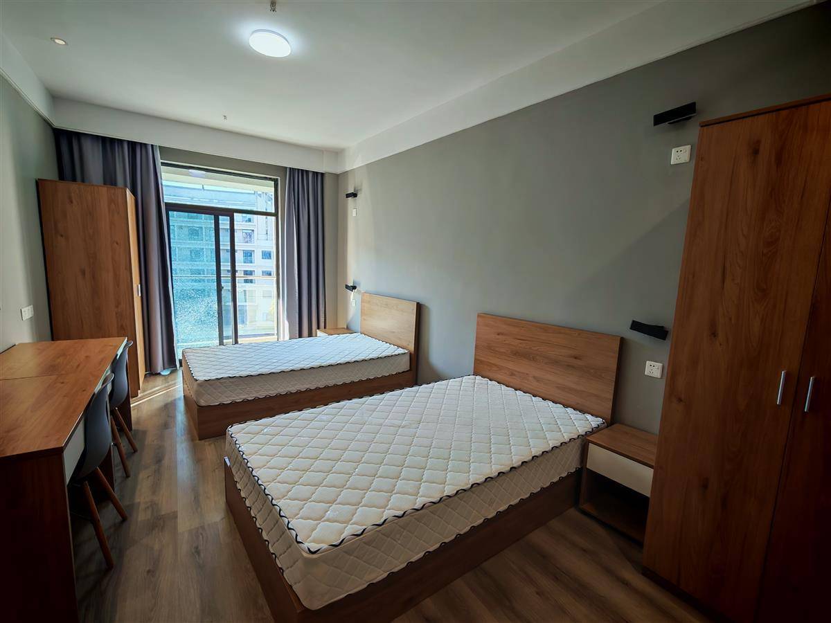 学生宿舍区也让记者眼前一亮。双人间设计,内设独立卫浴、学习桌、衣柜,在生活品质和学习环境方面给予学生们极大的保障。