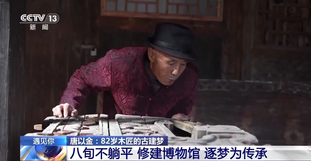 13岁因贫辍学,16岁开始跟老匠人学习木砖瓦工,在讨生活的路上,唐以金逐渐爱上了精巧的传统古建筑。在他看来,老师傅口中的“学以致用”,就是要把老手艺传承下去,也要把老物件保护下去。
