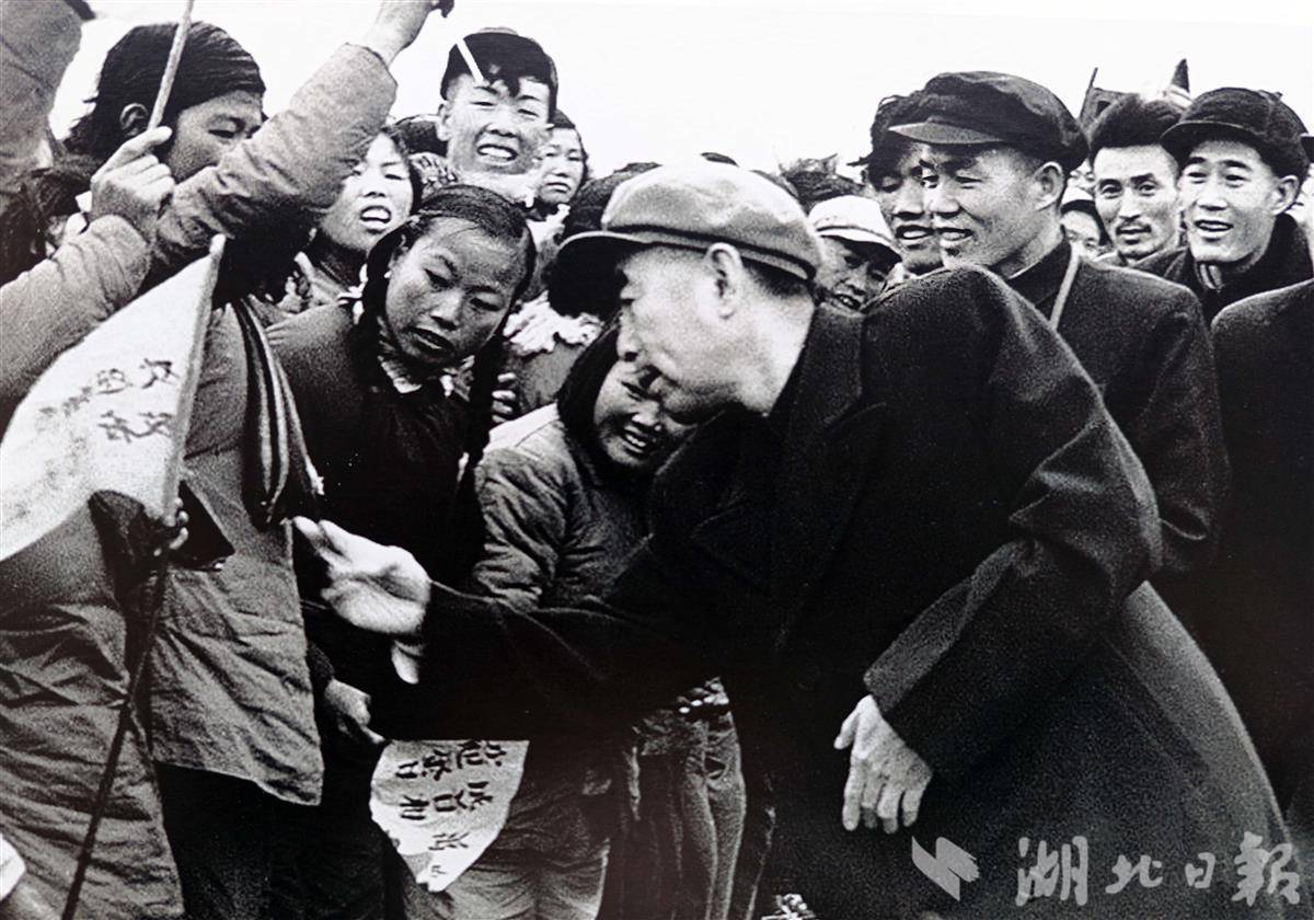 1958年12月周恩来在应城红旗公社和农民一起。(湖北日报记者 张其军 摄)